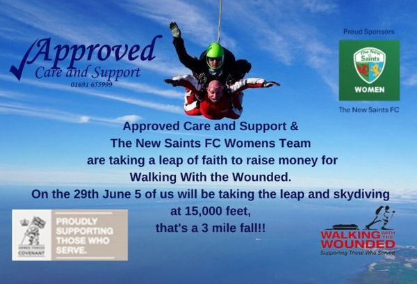 Approved Care and support have teamed up with The New Saints Women's FC to take the leap and jump out of a perfectly good plane, but all for a good cause. to raise funds to help our Veterans.